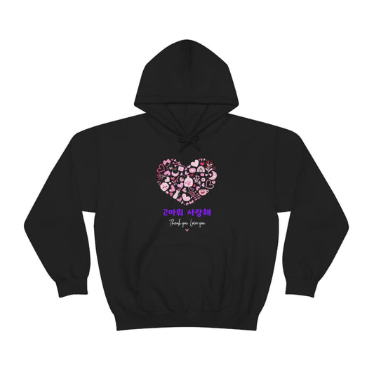 Love you Thank you Kpop Korean Quotes Unisex Heavy Blend™ Hooded Sweatshirt