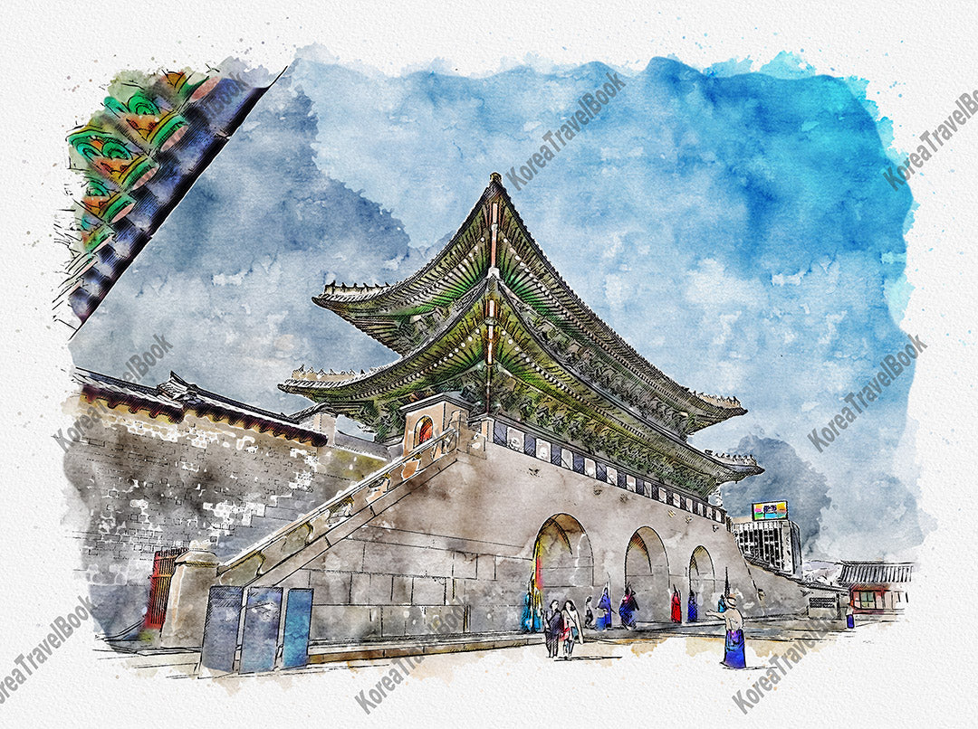 Royalpalace Korea travel sketch digital download,Gyeongbokgung,Seoul,color sketch part 4