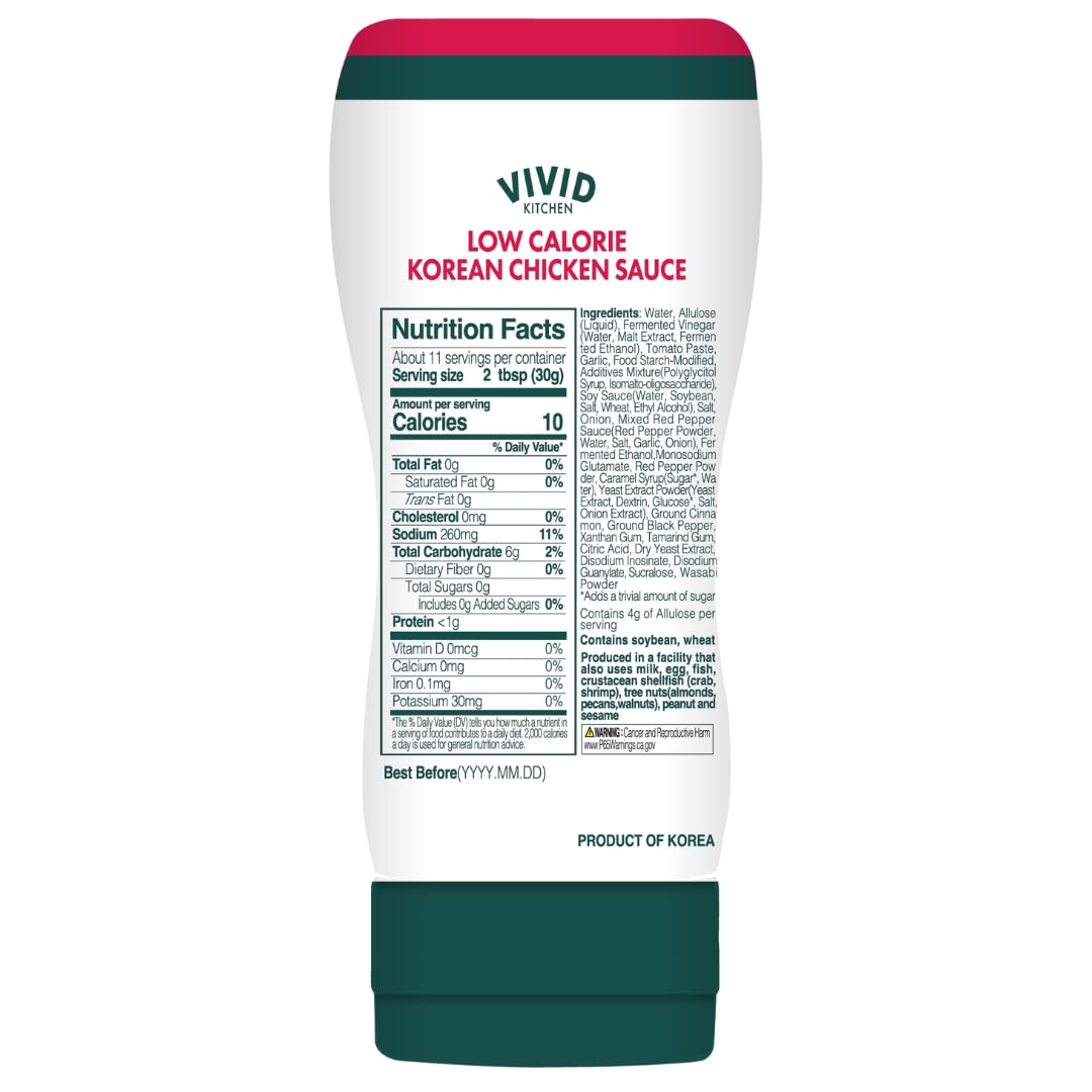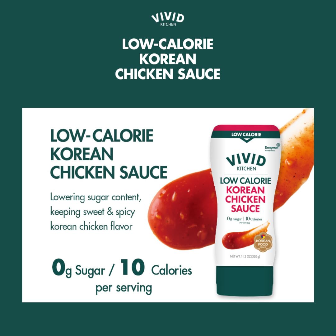 VIVID KITCHEN Korean Chicken Sauce – Low-Calorie, No Preservatives – Sweet and Savory Flavor – Easy Squeeze Bottles – Authentic Korean BBQ Marinade and Dipping Sauce – 2 Pack – 11.33 oz Each